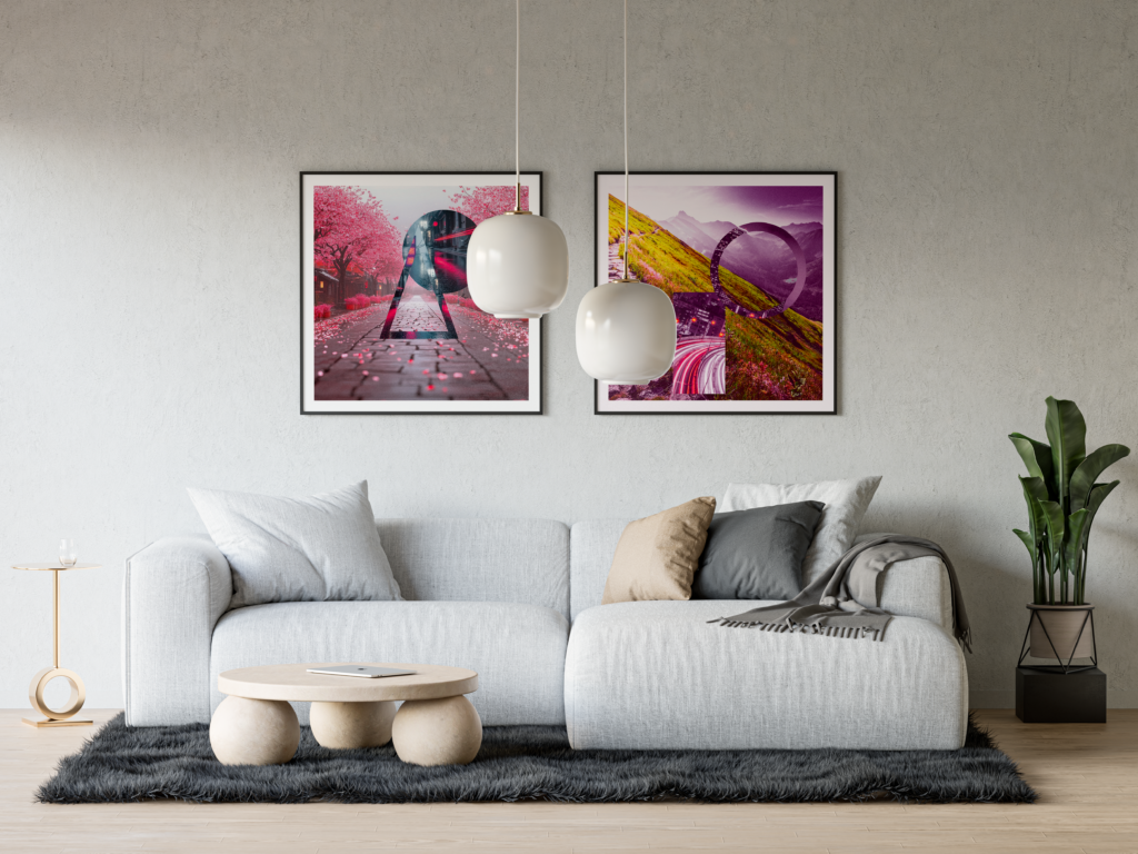 Série de travaux en direction artistique : un polyscape, une affiche inspirée du film minimaliste et une création à la manière d’Apple, explorant la réduction graphique, la composition épurée et l’impact visuel.